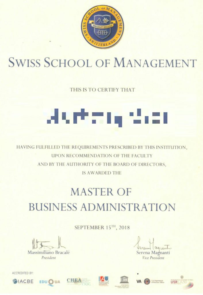 Swiss School of Management Master of Business Administration |