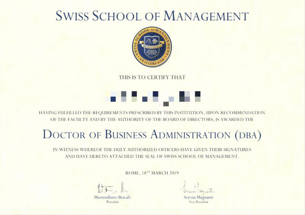 Swiss School of Management Doctor of Business Administration |